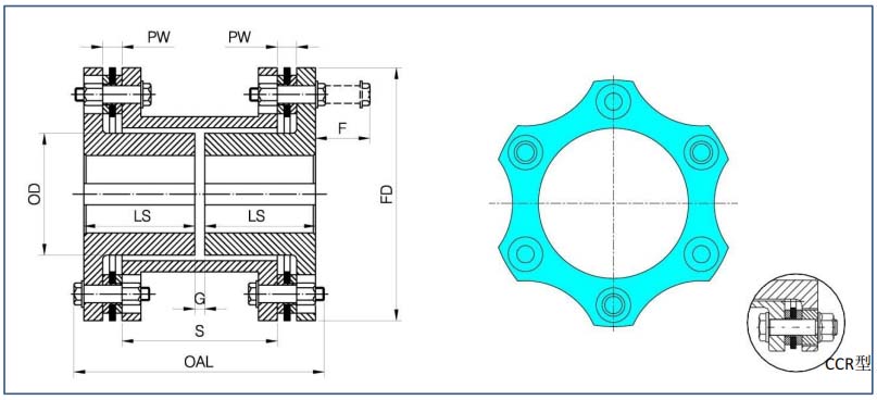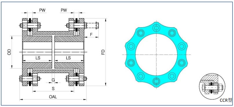 G系列膜片聯(lián)軸器有6孔、8孔及10孔設(shè)計(jì),滿足不同扭矩及補(bǔ)償?shù)囊螅⒂卸喾N結(jié)構(gòu)型式,可根據(jù)要求進(jìn)行動(dòng)平衡,也可根據(jù)要求滿足API610或API671標(biāo)準(zhǔn)。