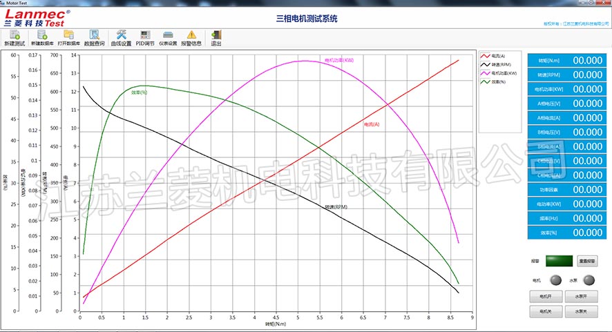 Function: display real-time voltage, current, motor power, torque, speed, efficiency data and waveforms of various motors, and generate curves and reports to save and print. |