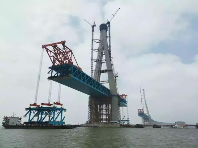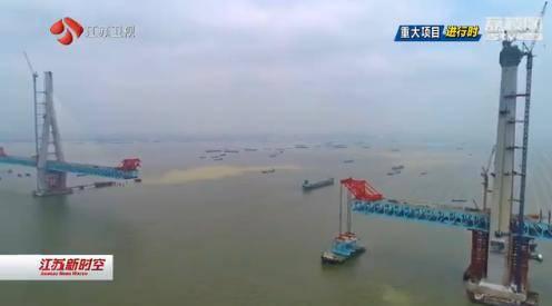 滬通長(zhǎng)江大橋主橋鋼梁架設(shè)過半