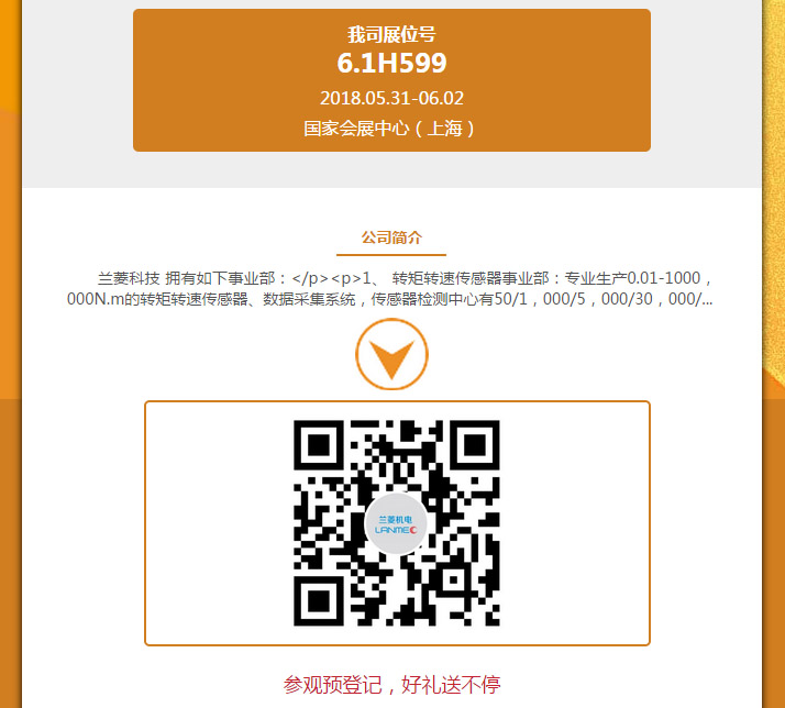 | 2018第七屆FLOWTECH CHINA上海國際泵管閥展覽會(2018.05.31-06.02)在上海虹橋國家會展中心舉行,我司展號位為: 6.1H599,歡迎新老客戶蒞臨指導(dǎo)! 蘭菱科技 一 扭矩傳感器、電機(jī)測試臺、執(zhí)行器測試臺、減速機(jī)測試臺品牌制造企業(yè)。 集團(tuán)總部: 江蘇海安 售后保障: 江蘇、上海、北京、深圳 聯(lián)系人:顧聳智 13962700160